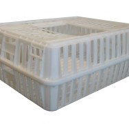 Pluimvee transportkrat met 2 schuifdeksels – tot 30 kg p.st. te beladen – tot 9 hoog stapelbaar – ca. 600 st. per truck; ook in een nestbare vorm ongemonteerd te verkrijgen. HQ PE materiaal – kleur op aanvraag. Onderdelen los verkrijgbaar.